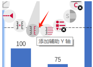 4、如果想要展示不同系列的数据,我们还可以通过think-cell设置双Y轴,以便更清晰地对比分析。选中图表右击,在菜单中选择【添加辅助Y轴】选项,在图表右侧会新增一个Y轴,然后对右侧Y轴的刻度标签进行设置,在同一张图表上对比分析两种不同单位的数据差异情况。